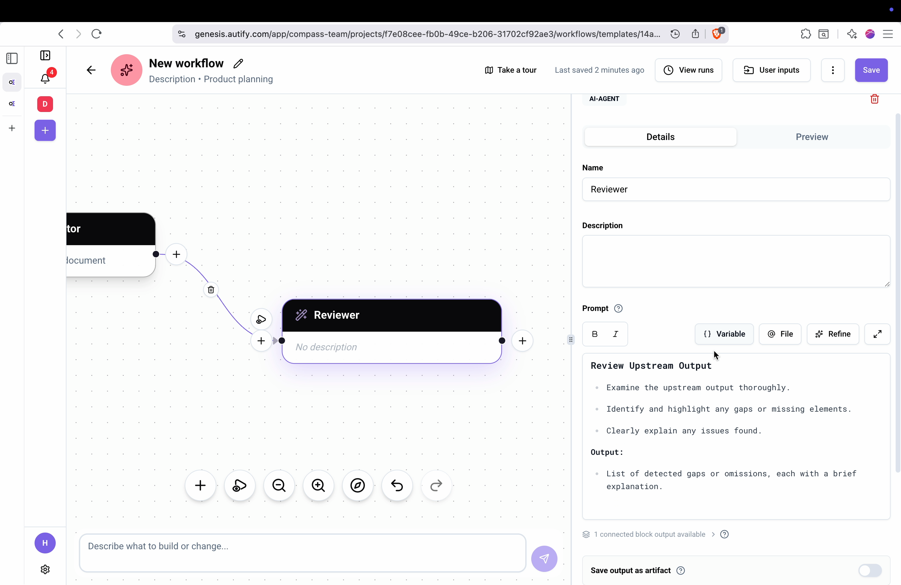 Solution: Autify Genesis 2.0 generates highly detailed, precise documentation directly from the source code, including product requirements, design docs, and API specifications. This not only helps ensure that features are built correctly but also facilitates better communication between technical and non-technical stakeholders. Product managers can easily validate if features align with business goals, ensuring that no details are missed.