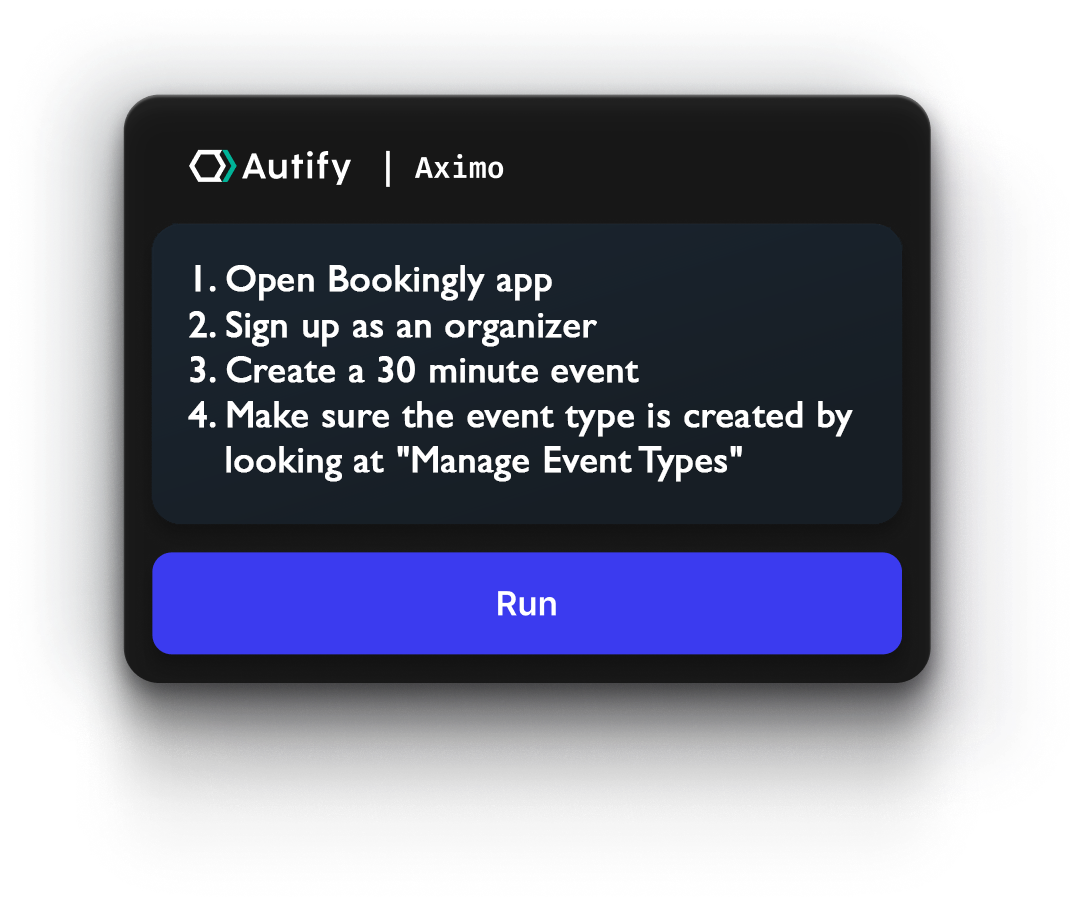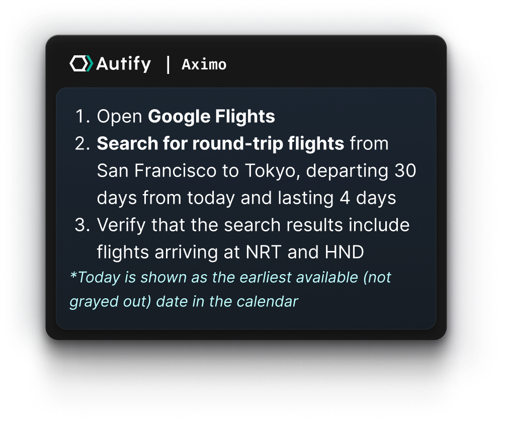 Experience what autonomous testing looks like when execution replaces scripts. Try Aximo on your own workflows and see how it handles real user flows across platforms.